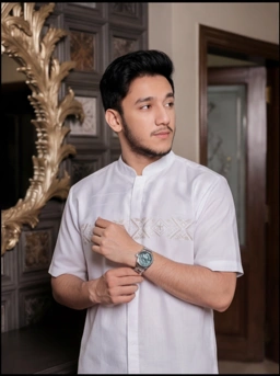 Tampilkan wibawa yang tak lekang oleh waktu dengan Rhafa KokoMenggabungkan kemewahan tekstur White Emboss dengan kenyamanan Cotton Dobby pilihan, koleksi ini dirancang khusus oleh H Society untuk pria yang menghargai detail artistik dan kualitas premium. Siluetnya yang gagah memberikan kesan luxury yang subtil, menjadikannya pilihan utama untuk momen ibadah maupun acara formal yang prestisius.