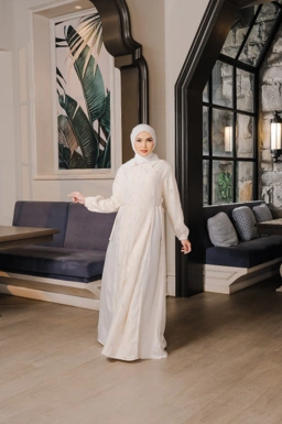 - Model: Terusan (Dress) dengan potongan siluet A-Line yang elegan.