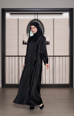 Highlight: Lauren Dress adalah simbol dari "Luxury Modesty". Penggunaan Armani Silk memberikan efek jatuh yang sangat indah, sementara aksen Jacquard memberikan karakter unik yang menonjolkan prestise pemakainya di acara formal maupun hari raya.